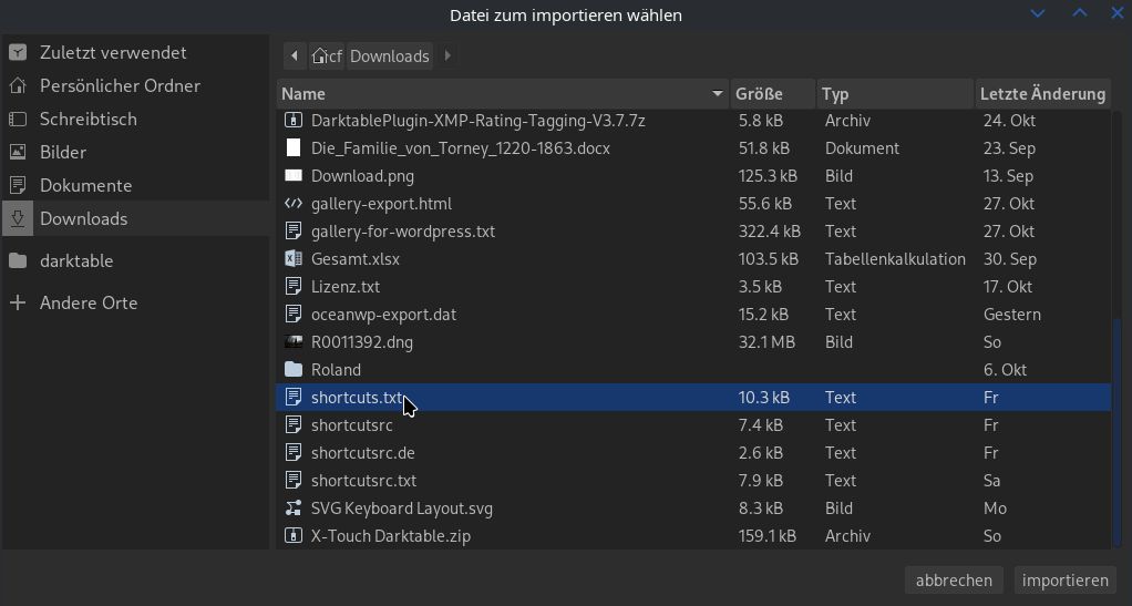 Öffne deinen Download-Ordner und wähle die shortcuts.txt datei aus. Bestätige mit „importieren“.