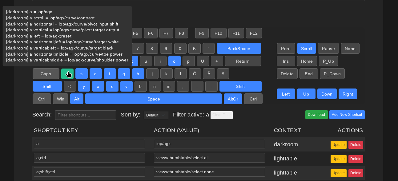 Weitere Informationen und Beispiele findest du unter: Darktable Tastaturbelegung Pro