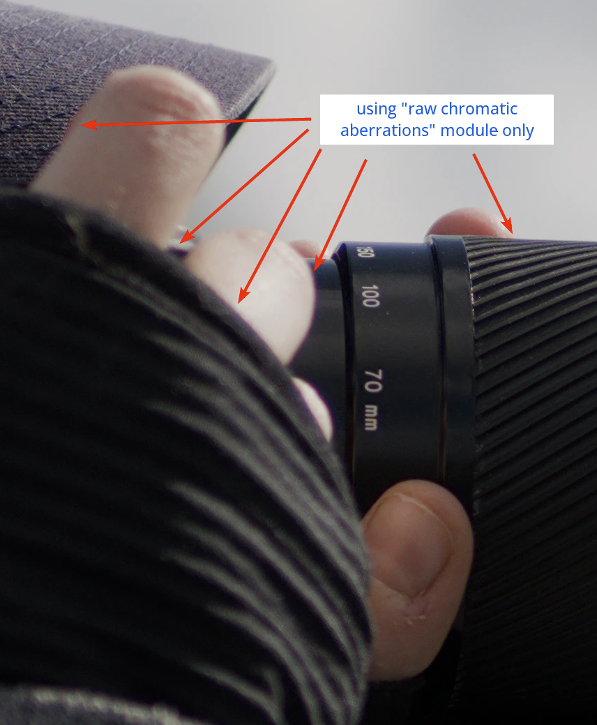 - If the “Raw Chromatic Aberrations” module wasn’t strong enough (especially with older lenses or extreme contrasts). Sometimes stubborn purple or green fringes might remain, so this module is the second line of defense.