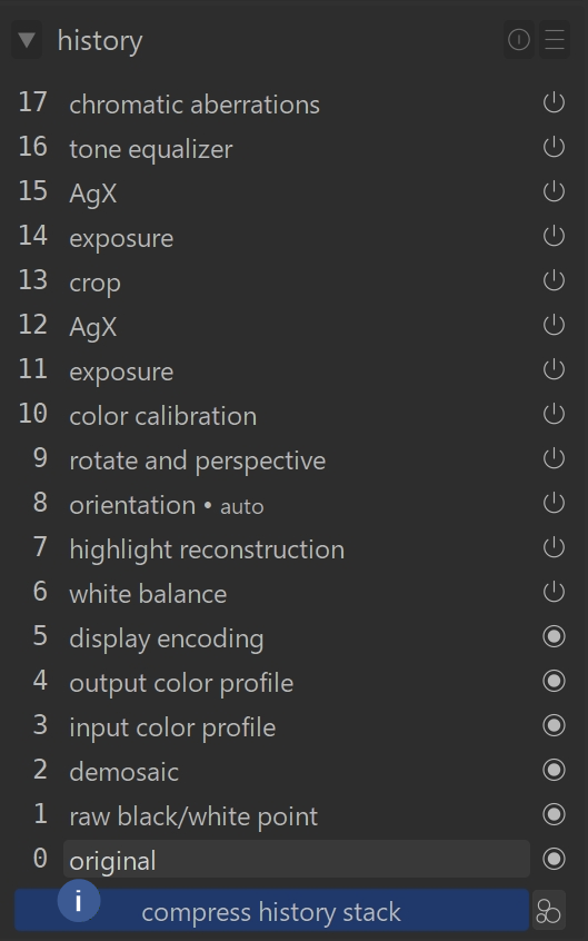 • You can view and edit this stack in the History Stack module inside the darkroom view.