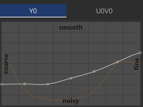 - Often it is enough to just raise the U0V0 curve (color) slightly to remove colorful speckles, while leaving the brightness noise (Y0) somewhat “grainy” for more sharpness.