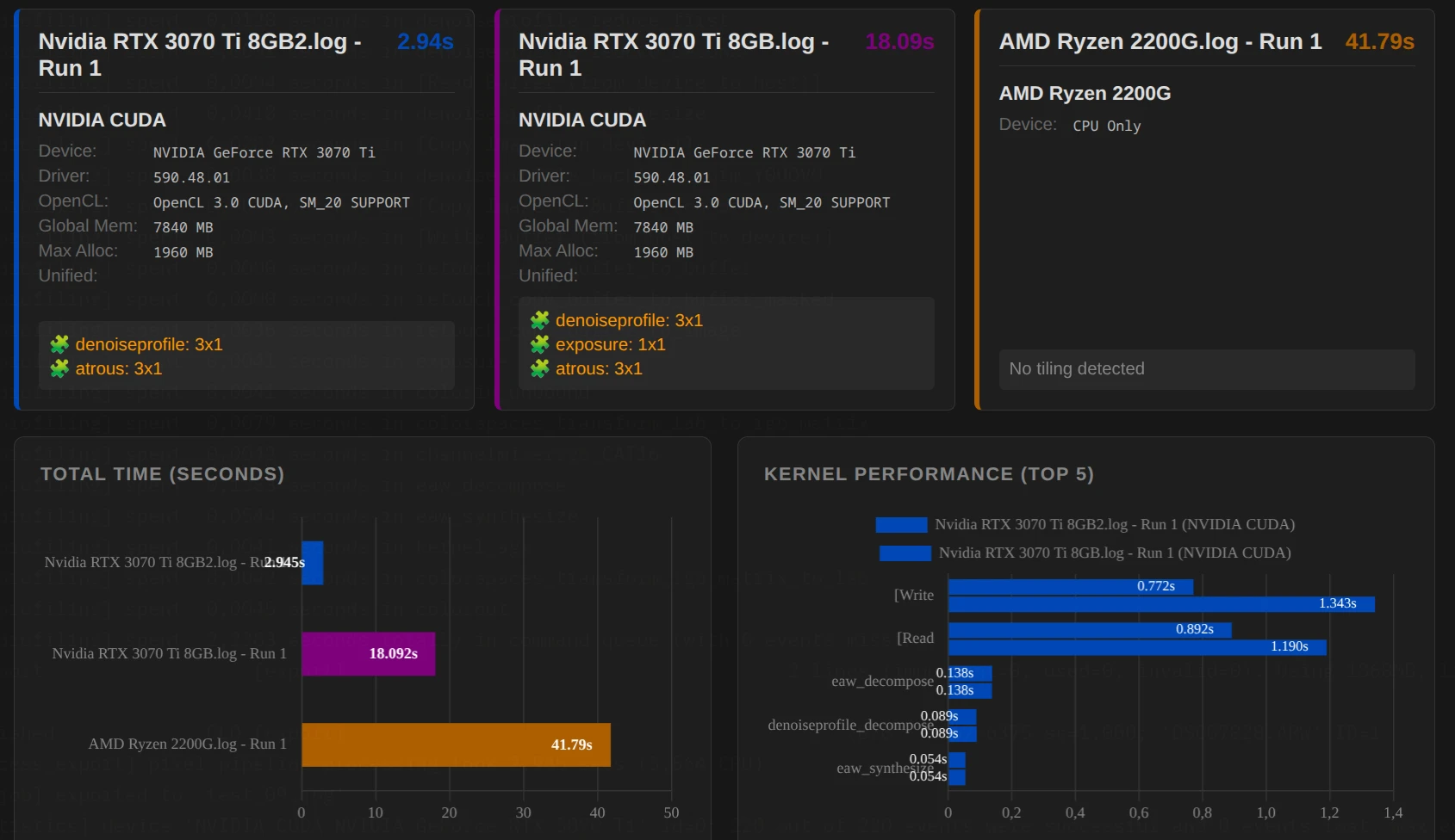 Darktable uses OpenCL to communicate with the graphics card. But how OpenCL is implemented makes a difference.