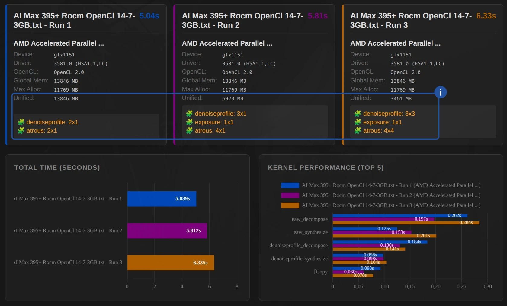 Important: This example does not indicate whether ROCm is generally better than OpenCL-Mesa! This may vary depending on the system.