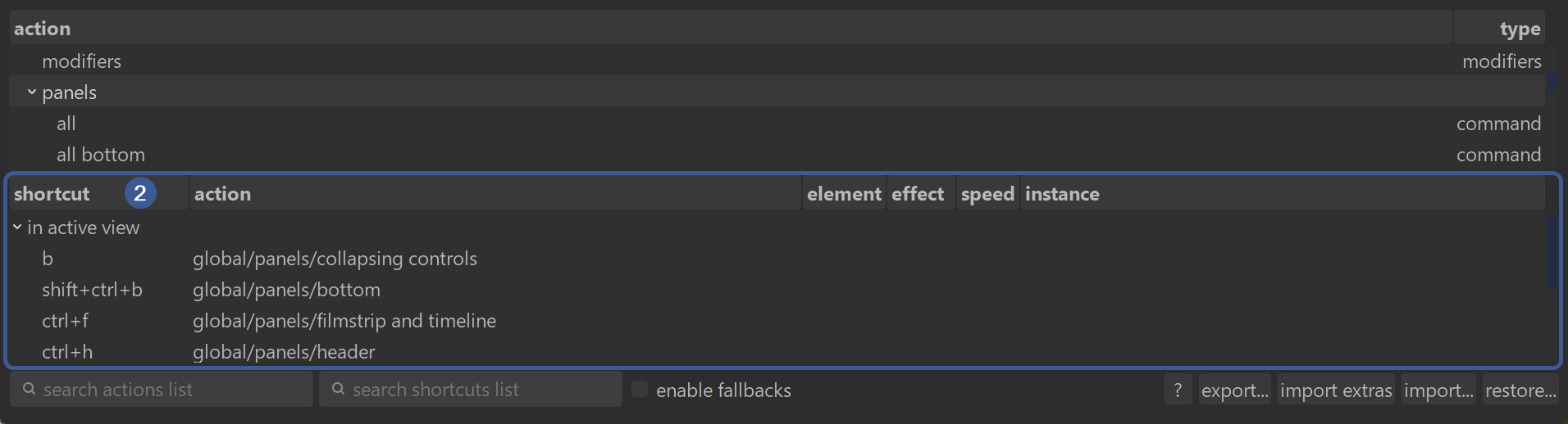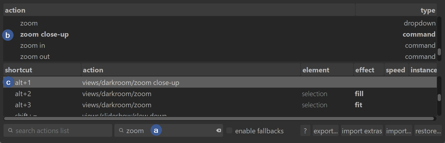 Fallbacks let darktable automatically create a whole set of shortcuts from one base shortcut.