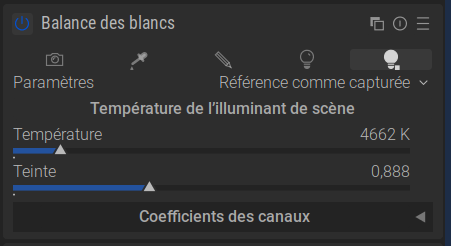 Pour plus d’informations, consultez la page du manuel officiel de darktable : balance des blancs [EN].