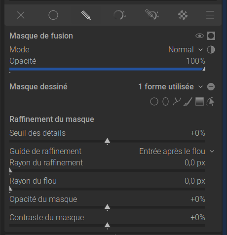 - Masque dessiné : le pinceau, pour un masquage peint à la main.