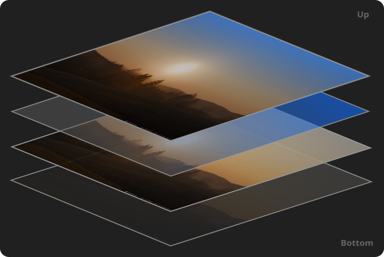- Masques : Découpez des trous dans les feuilles. De cette façon, une modification n’affecte que l’endroit souhaité (ex. uniquement le ciel).