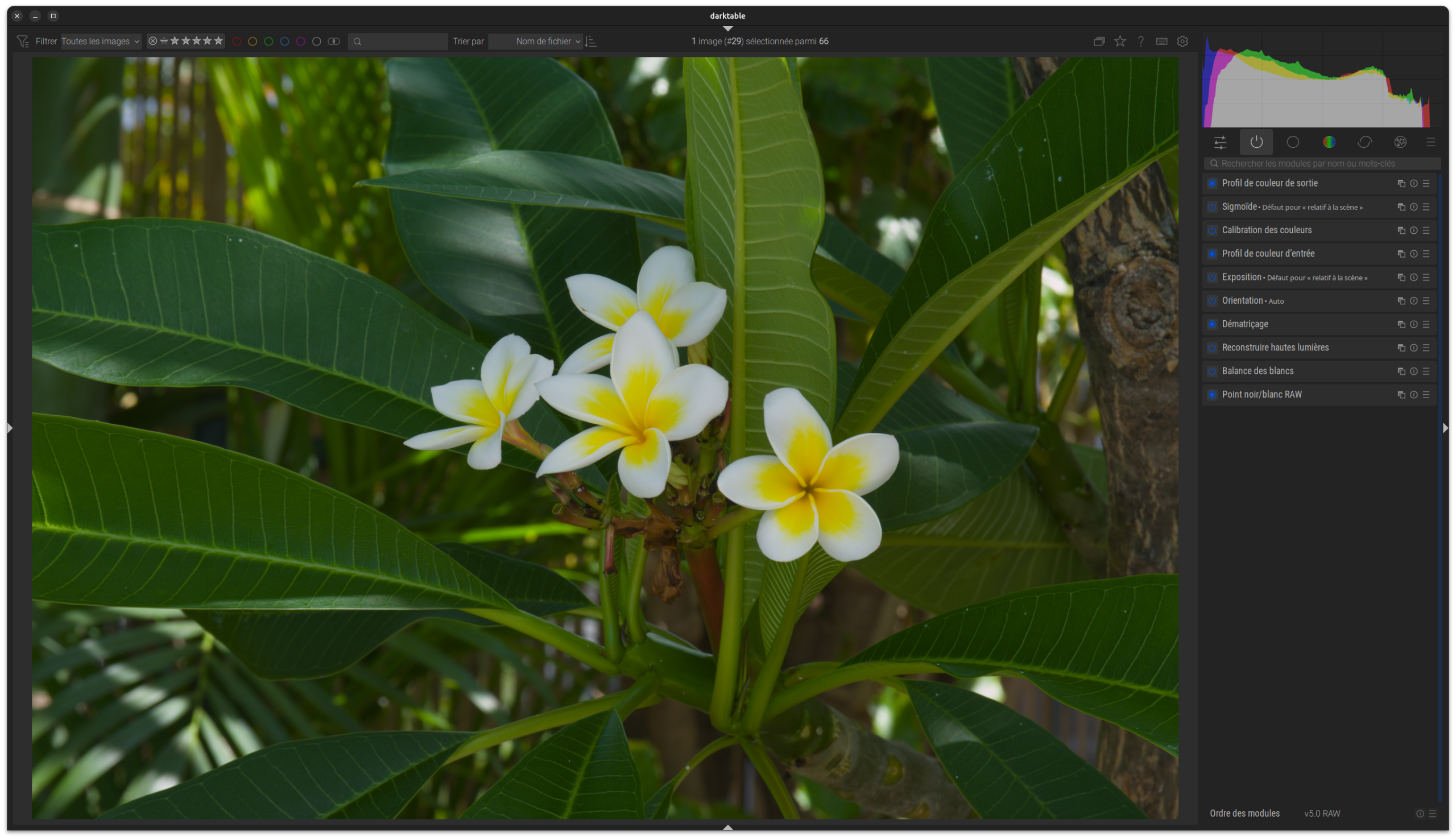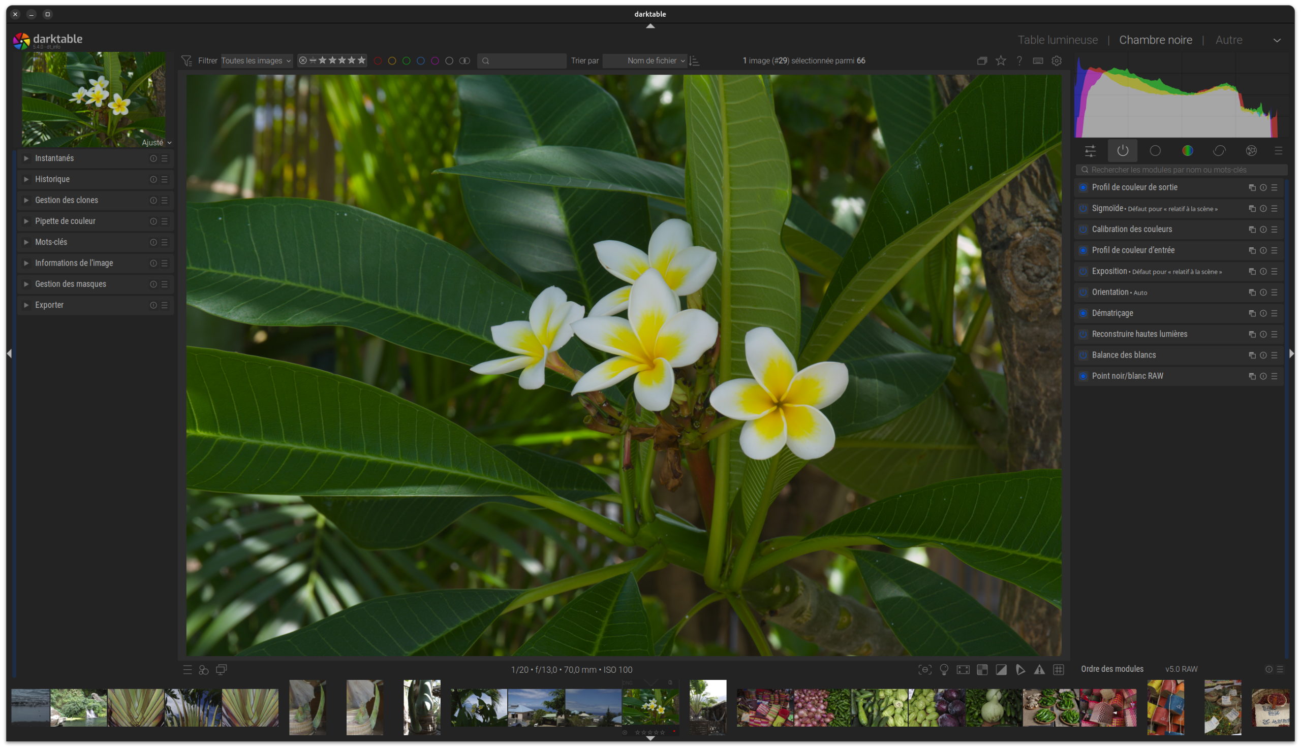 Important : darktable est un éditeur d’images non destructif ; vos fichiers image ne sont jamais modifiés directement ! Vous les exportez avec vos modifications appliquées.