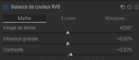 - Utilisez le curseur « Saturation globale » (ou « Vibrance » dans le préréglage) pour renforcer les couleurs.