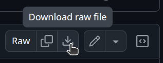 - Pressez Ctrl+Maj+S ou cliquez sur l’icône Télécharger le fichier brut à droite de l’écran :