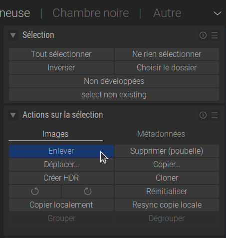 Remarque : comme le fichier n’est plus physiquement présent sur disque, cela ne fait que nettoyer la base de données de darktable.