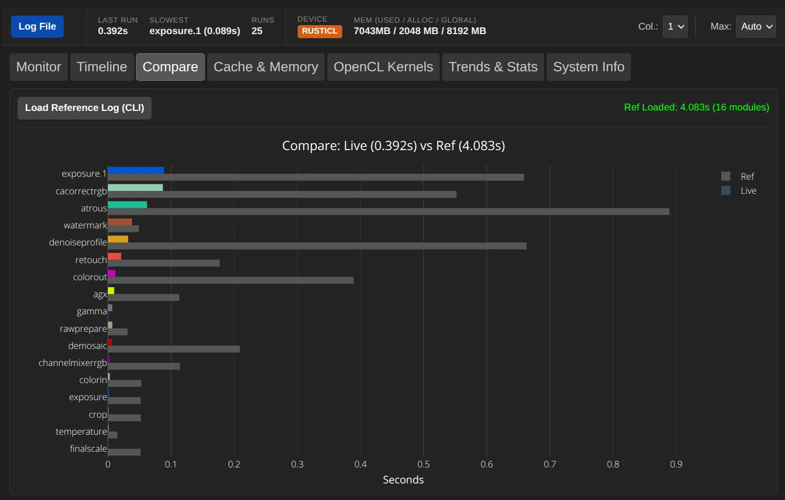 Wichtig: Die Reihenfolge der Module in der Pixelpipe von DT ist fest vorgegeben. Auch wenn du ein Modul „später“ einschaltest, wird es an der technisch korrekten Stelle berechnet – es lohnt sich also, die „schweren Brocken“ bis zum Schluss deaktiviert zu lassen. - OpenCL-Treiber (Linux/AMD): Teste, ob deine AMD-Karte mit dem ROCm-Treiber oder dem neueren RustiCl-Stack besser läuft. Ein einfacher A/B-Test der Exportzeit bringt hier schnell Klarheit.