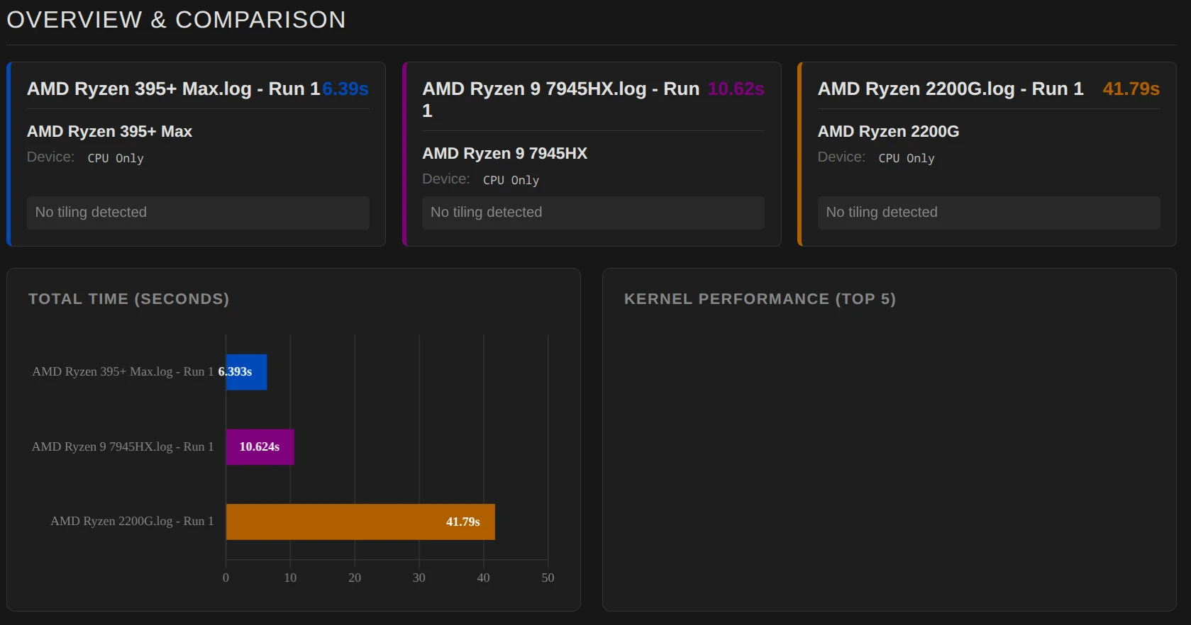 CPU only – AMD Ryzen 3 2200g vs. Ryzen 9 7945HX vs. Ryzen AI Max+ 395