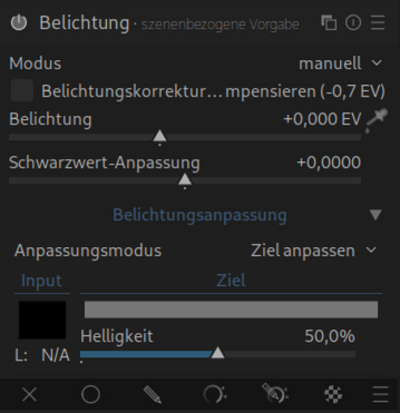 Stellen Sie die Gesamtbelichtung für die Mitteltöne mit dem Belichtuns-Modul ein.